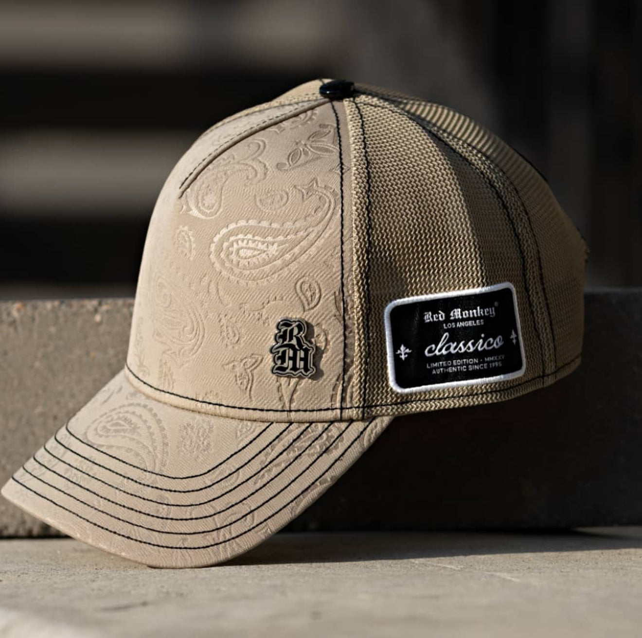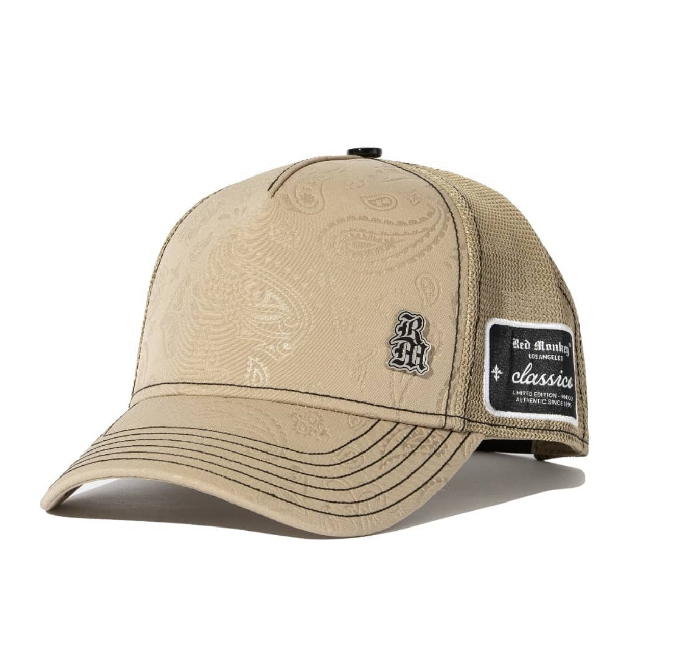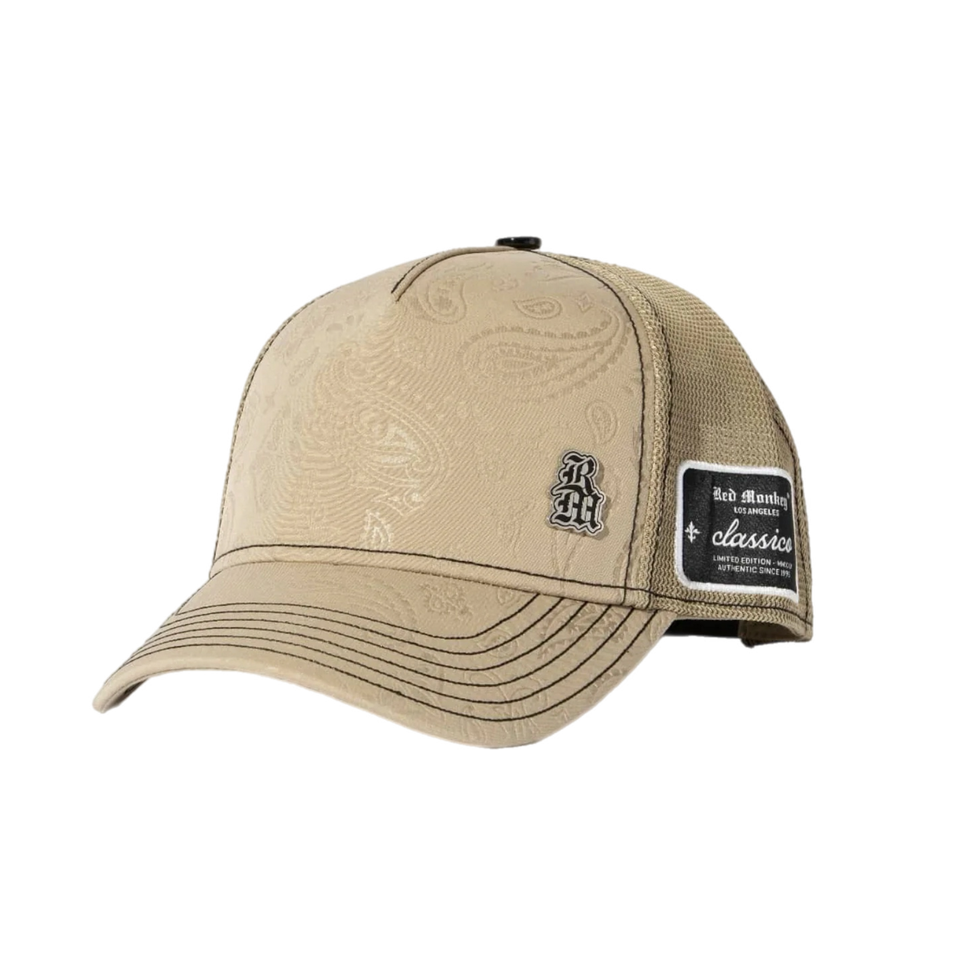 Red Monkey Classico Chrome Mushroom is an uber clean look with a paisley stamp pattern on the crown & visor, special side hits on both side and a chrome plated RM to top it off.
