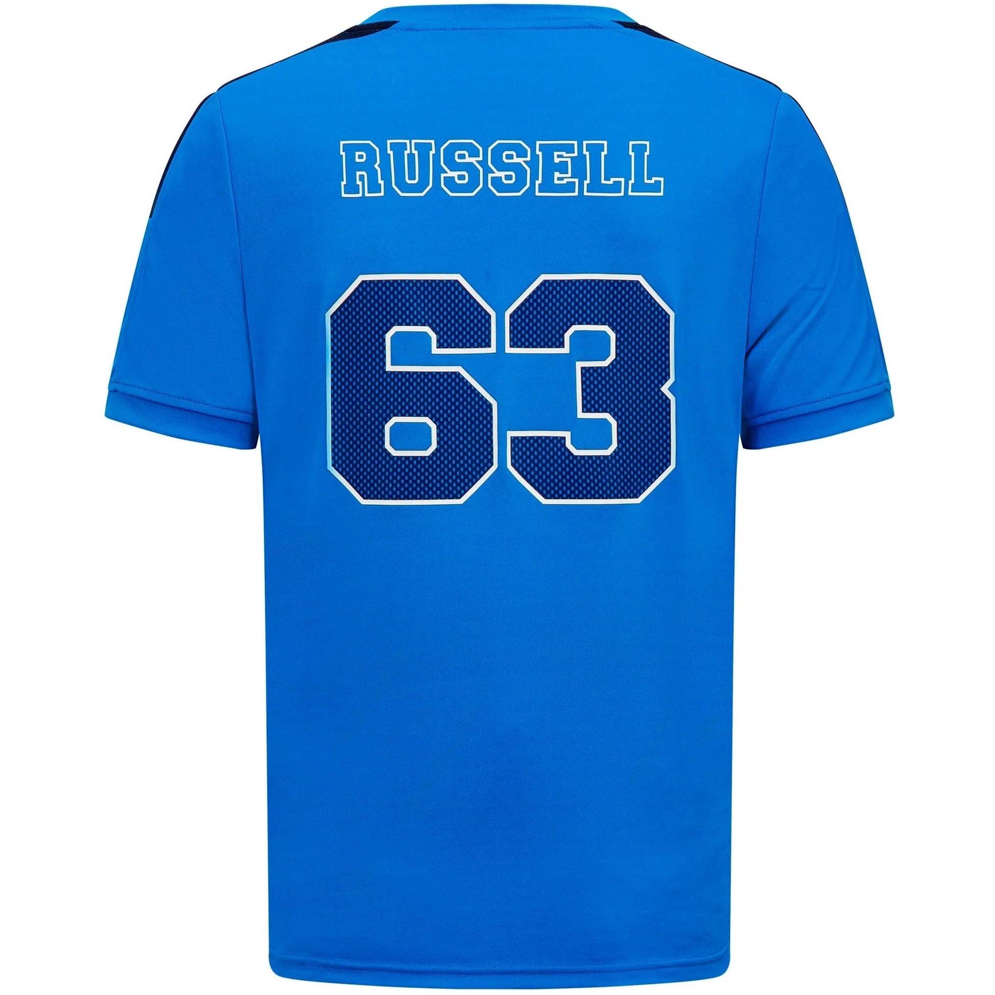 The ultimate sportwear inspired T-shirt for any George Russell fan, thanks to a bold football style 'RUSSELL 63' print on rear. Sweat wicking Polyester and mesh inserts add a performance edge. Part of the George Russell GR63 fan collection. Polos, T-shirts and Hoodie also available.