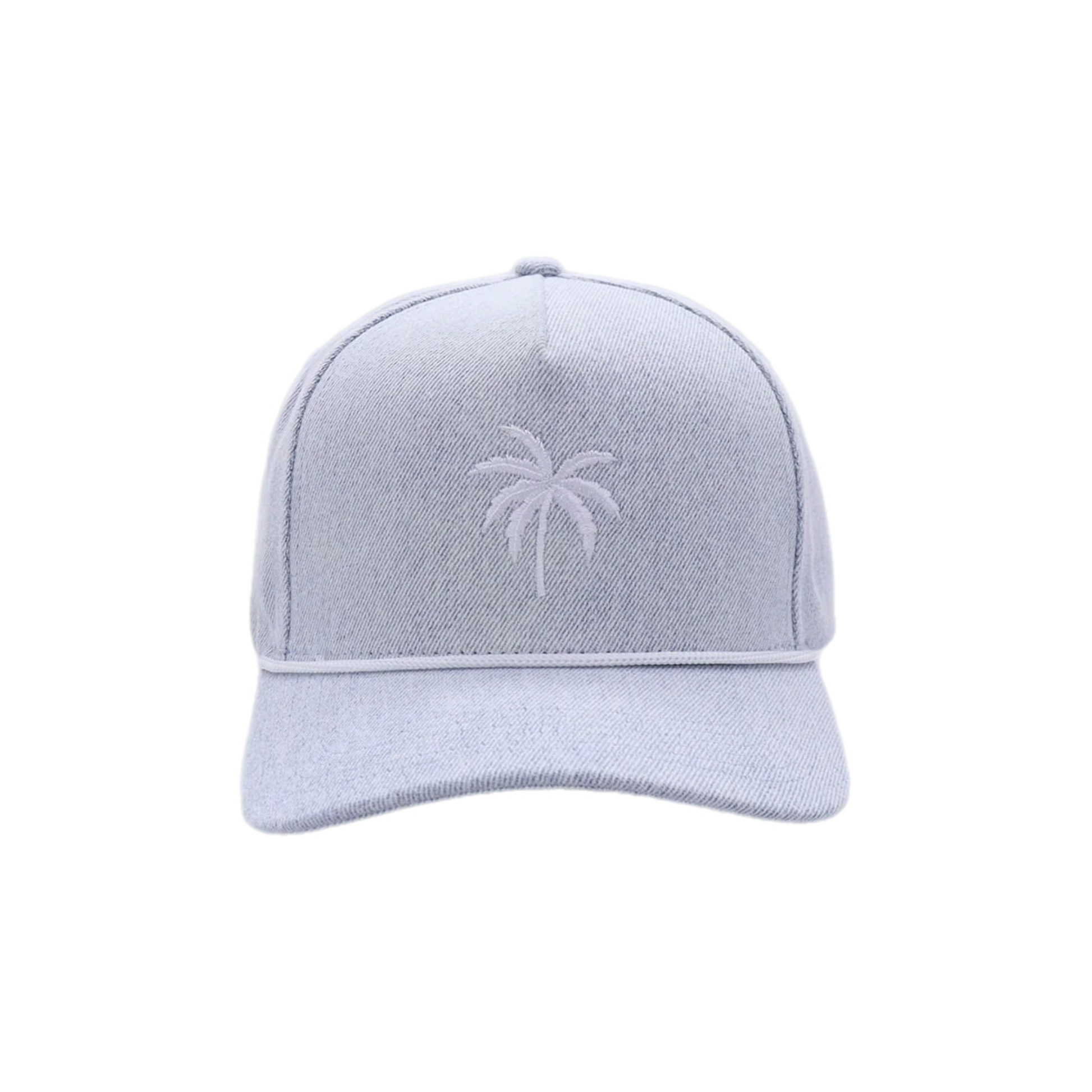 Introducing Palmera Denim, the ultimate waterproof drifit hat. Featuring a sleek white embroidered palm tree and a stylish white rope on the visor. With a convenient snapback design, this one size fits most hat is perfect for any adventure. Stay protected and stylish with Palmera Denim. #GDCERTIFIED